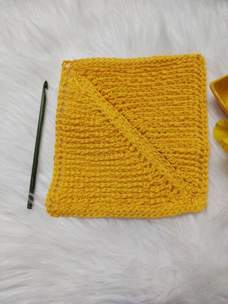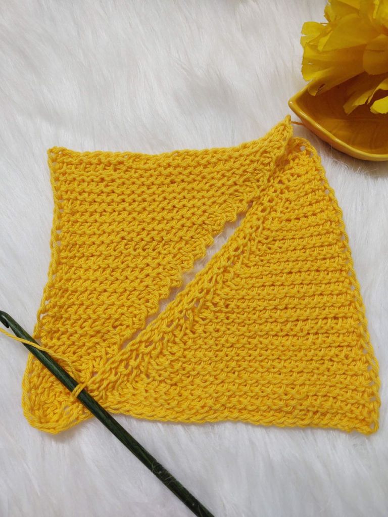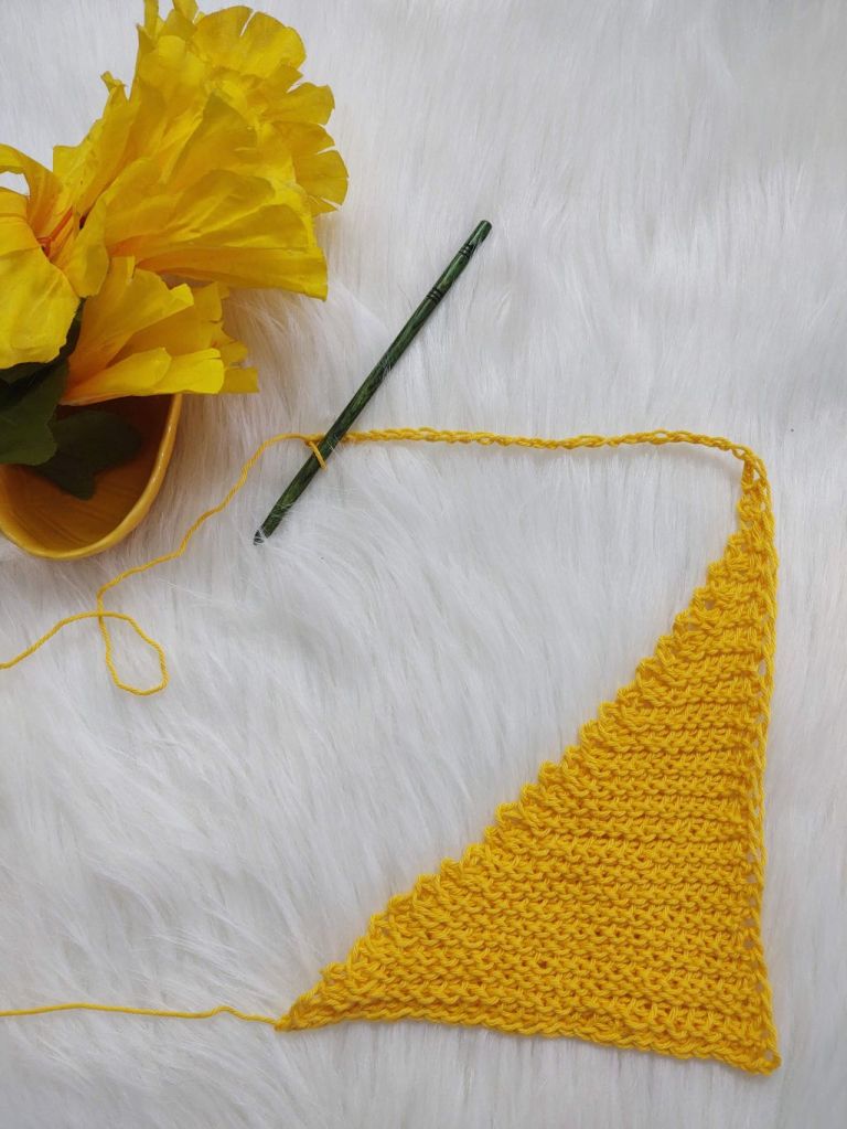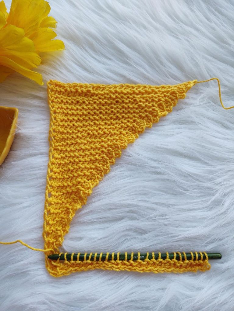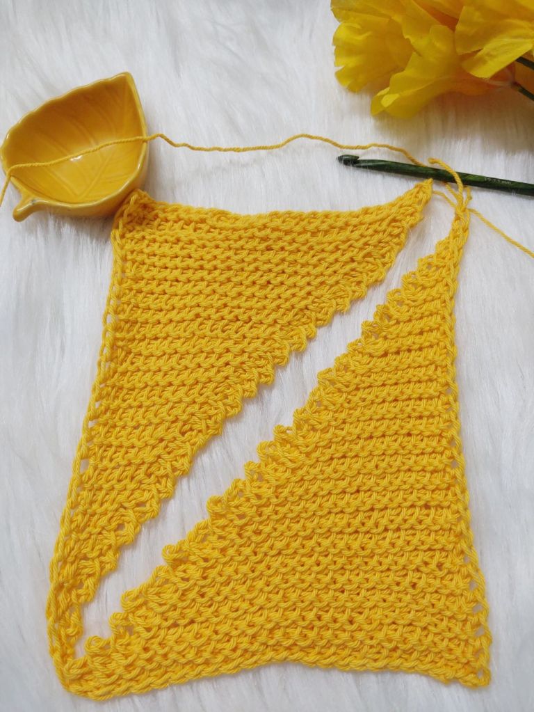 For today’s post however, I am not combining these two stitches. We will be using the stitch to form a square using the short row technique , making two triangles and seaming the diagonal ! This time the short row technique we are going to use is to leave the last stitch unworked.