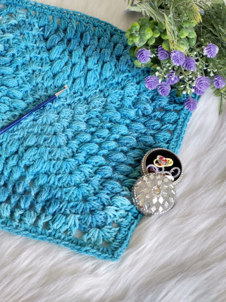 Granny square day is celebrated on August 15th every year and it also coincides with the Indian Independence day! In August 2020 , we released our first Blanket pattern , Mazhaikaalam. This was made up of 5 different granny squares with the designs based on the monsoon! You can check out the blanket pattern on Ravelry . The squares are available individually as well from both Ravelry(click the image below to go to the individual squares and Payhip – Kaatru (meaning breeze), Megam (meaning cloud), Thooral (meaning drizzle), Saaral (meaning downpour) and Thulir(meaning shoots).