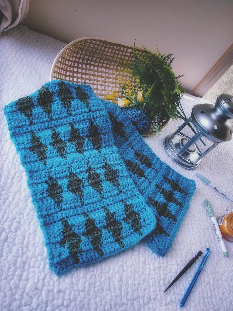 Having got the Blog Hop deciphered, Let us get into the brass tacks of getting the Waffle crunch neck warmer pattern! This pattern uses the Tunisian Crochet technique to give you a wonderfully warm and cozy scarf / neck warmer!