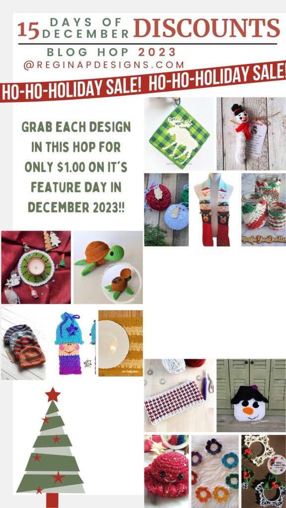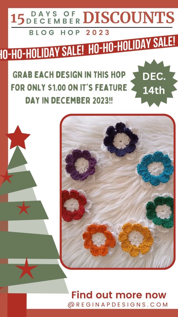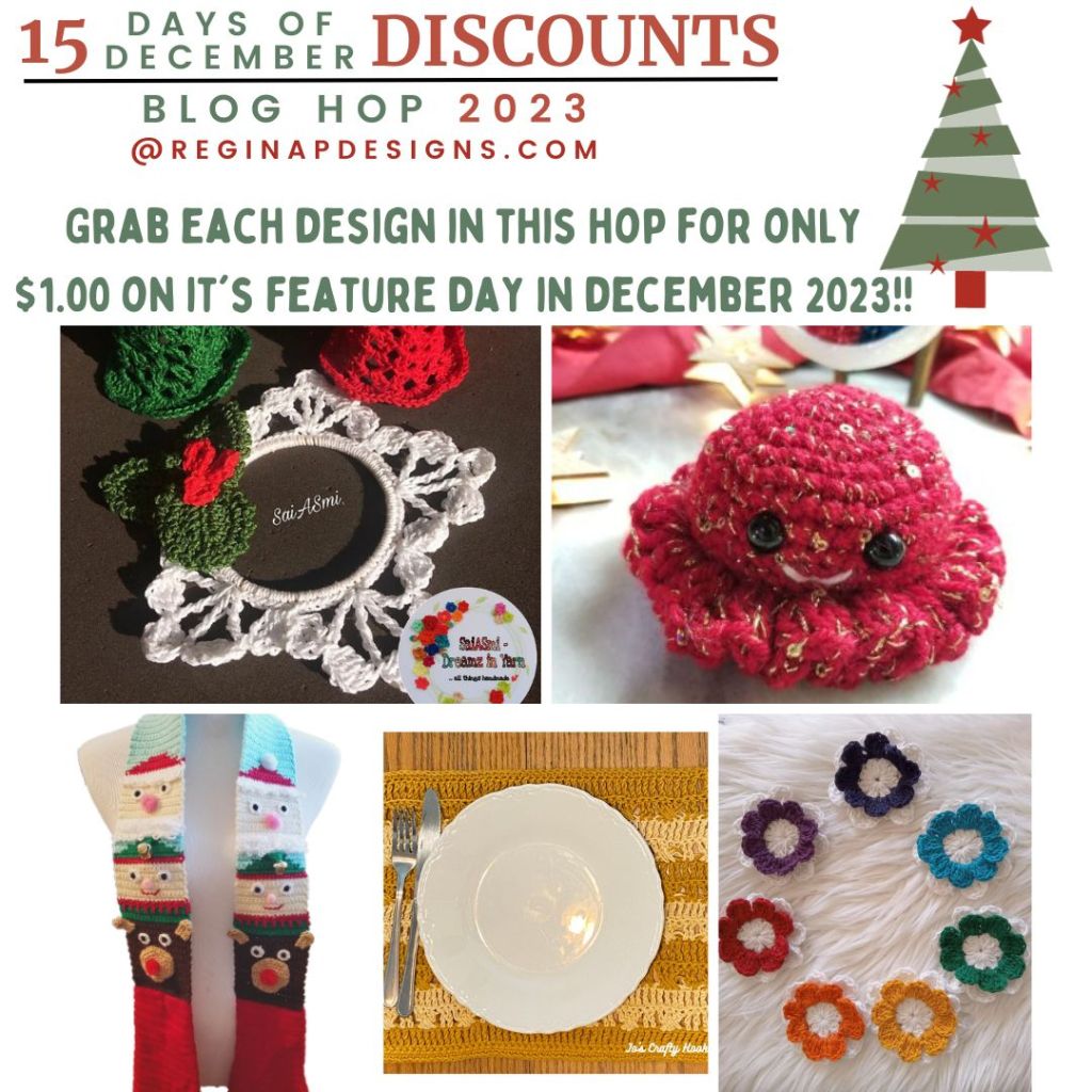 The 15 days of December discounted blog hop hosted by Regina P Designs is coming to you soon! A set of crochet designers are coming together to bring you the most amazing patterns at a discounted rate of just 1$!!!!