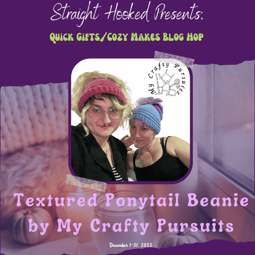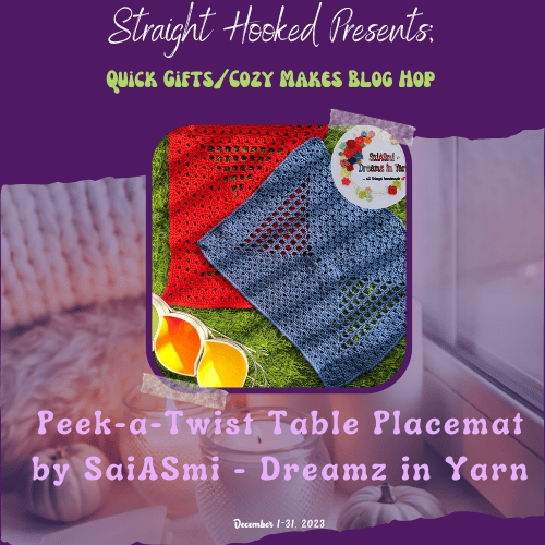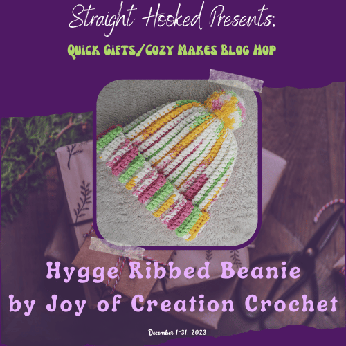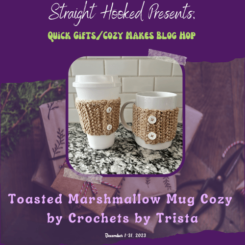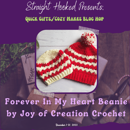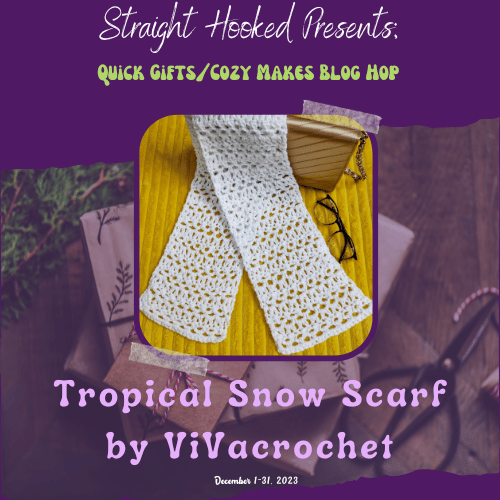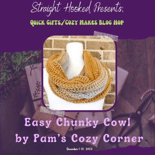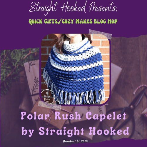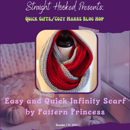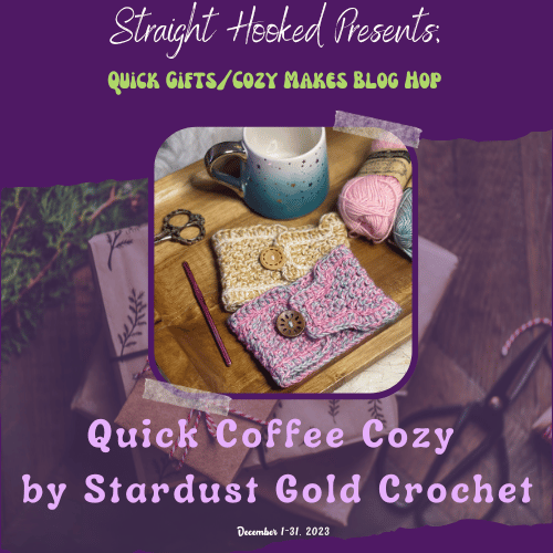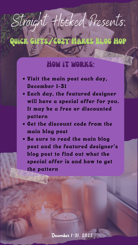 Welcome to the Quick Gifts and Cozy Makes Blog hop hosted by Malena of StraightHooked! A whole bunch of talented crochet designers have come together to make this blog hop a success! We have each contributed a winning pattern that will be featured one a day on Malena’s blog . All you have to do is visit her page and get the link to the Designer who is featured that day and head over to the Designer’s blog to find a surprise waiting for you!