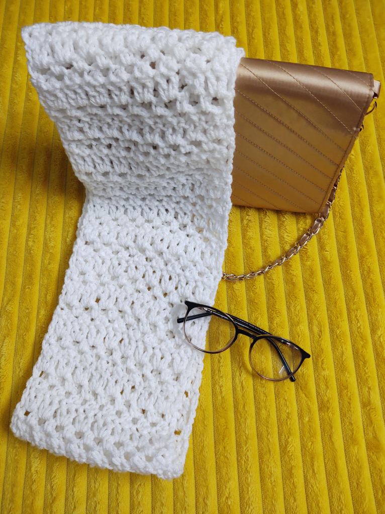 We at ViVaCrochet are bringing you a scarf pattern that literally flies off your hook! The scarf uses regular 4 ply worsted weight acrylic yarn and 4.5 mm hook. A 40″ neck warmer size requires just 70 gms (130 mts) while the full scarf will require 300 gms (600 mts) . The pattern is a 3 row repeat and worked on one side of the starting side and then the yarn is rejoined and worked on the other side of the starting chain! This is to ensure that the stitches fall down on either side of the neck in the same direction!