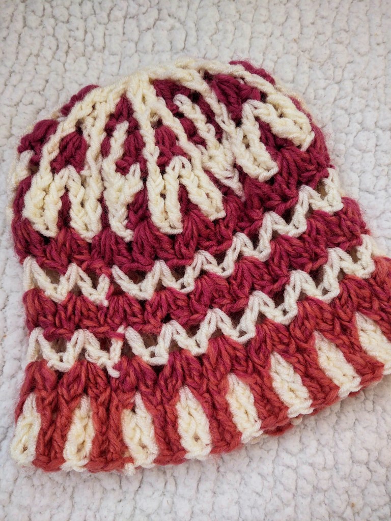 As I sat down to write the pattern , I noticed that I had made a mistake and not wanting to rip it out (as this was one of the instances that I had put in the ends as soon as I finished the last stitch), decided to make another! I was able to better tweak the pattern and liked the finished beanie better than the prototype!