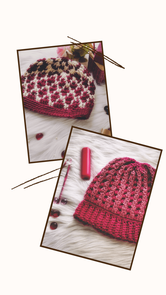 After working on the two beanies, I thought that this beanie needs a matching scarf! And I am happy to say that the scarf design practically flew off my hook and will be ready soon! A sneak peek of it will be revealed on social media tomorrow! The reason I am mentioning the details is because I am so thrilled that one ball of each color gave me two beanies, and half a scarf! Let me share the picture of the IcedVelvet Beanie without much further ado!