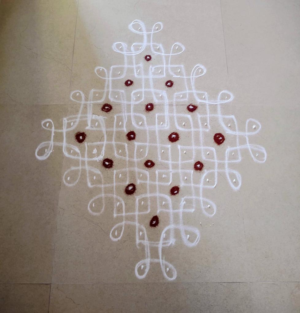 Colourful and intricate floor art called Kolam is created using rice powder in front of houses. These beautiful designs are believed to welcome prosperity and good luck.