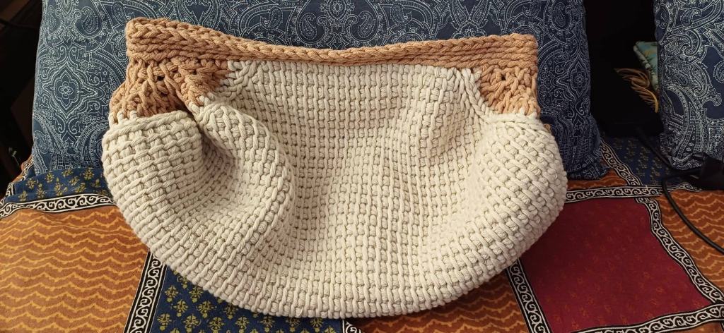 Last week we worked on the body of the bag and now it is time to start working on the decrease section! Once this part is done , you will be ready to line your bag and have it ready for converting this shape into a bag!