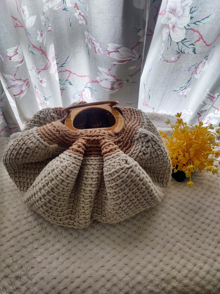 My husband immediately said ” Oh a Pumpkin bag!” Come to think of it , it does remind us of those cute crocheted pumpkins that pop up during Fall!