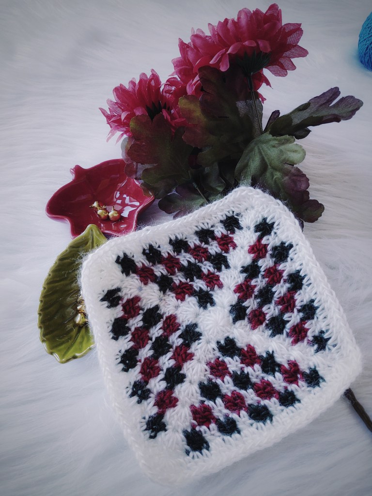 The soothing combination of gingham and granny square worked up in the holiday colors! The square can be made to any size although the pattern gives instruction for just one size. Make it in the size specified but make a lot and seam it for a beautiful baby blanket. Or make it one big baby blanket just by adding more rounds! Or make just one square and attach to a throw cushion for instant decor revamp! Whatever you decide to make, I can assure you that it will become a hit!