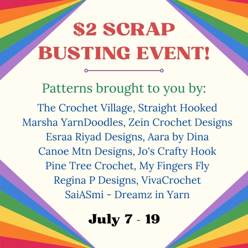 This Scrap busting event runs from July 7th until July 19th . Each of these designers have selected a beautiful pattern that will make the best use of scrap yarns. Using the coupon code , you can avail any of these patterns listed for $2.00