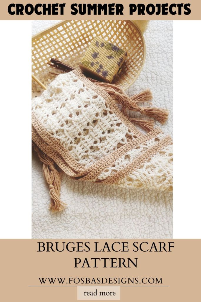 When I designed this scarf, I knew I wanted to use Bruges Lace technique but I didn’t want to make it lengthwise:) I also knew that I didn’t want a curve when I turned the Bruges lace strip. The addition of the edging and tassels resulted in a simple yet elegant scarf. Not a fan of tassels?, no worries, my testers have opted out of making them and it still is beautiful!