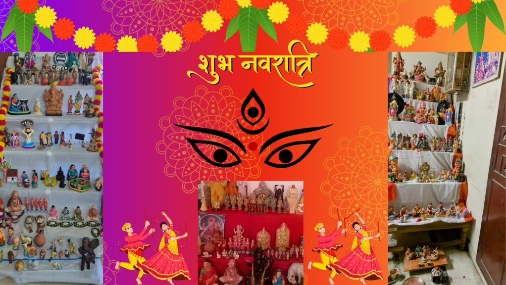 Navaratri is an annual Hindu festival observed in honor of the goddess Durga, the supreme goddess. It spans over nine nights (and ten days). It is observed for different reasons and celebrated differently in various parts of the Hindu Indian Cultural Sphere. This festival is celebrated post monsoon/ Autumn , just when the days start to get a nip in the air.