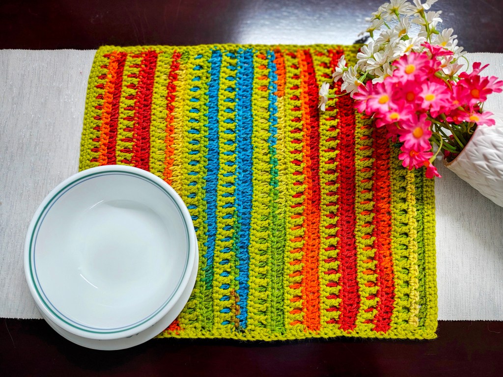 Starting this week , you have yours truly presenting the Garden Fresh Placemat as the free crochet pattern for week 2 of this month!