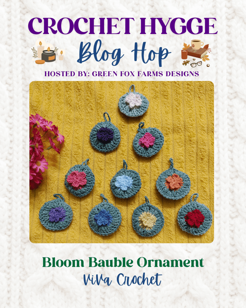 I will be featuring Bloom Bauble , a tiny , flower embossed ornament . This pattern’s feature day on Nov 22nd 2025. This pattern is available for free on this day . Mark your calendars so that you don’t forget!