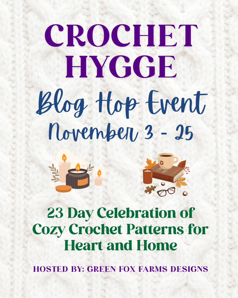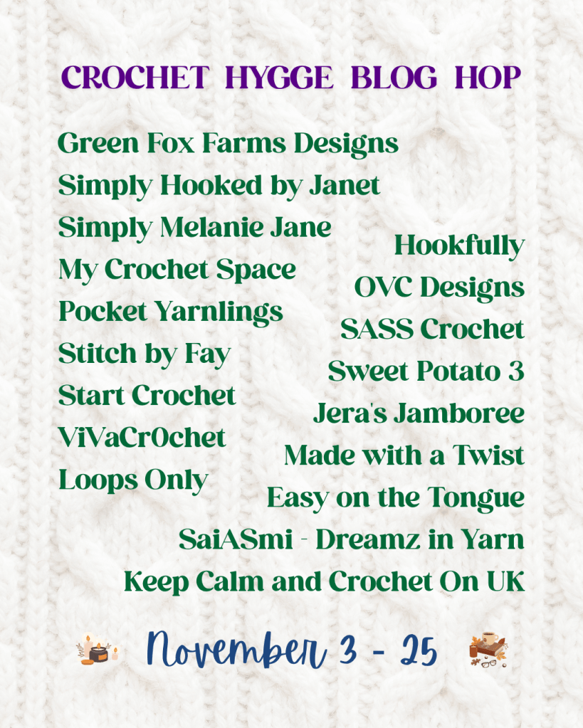 The Crochet Hygge blog runs from Nov 3rd until Nov 24th 2025 and each day there will a featured pattern that you can download either at a discounted price or get the pattern for free on the Designer’s blog/website.