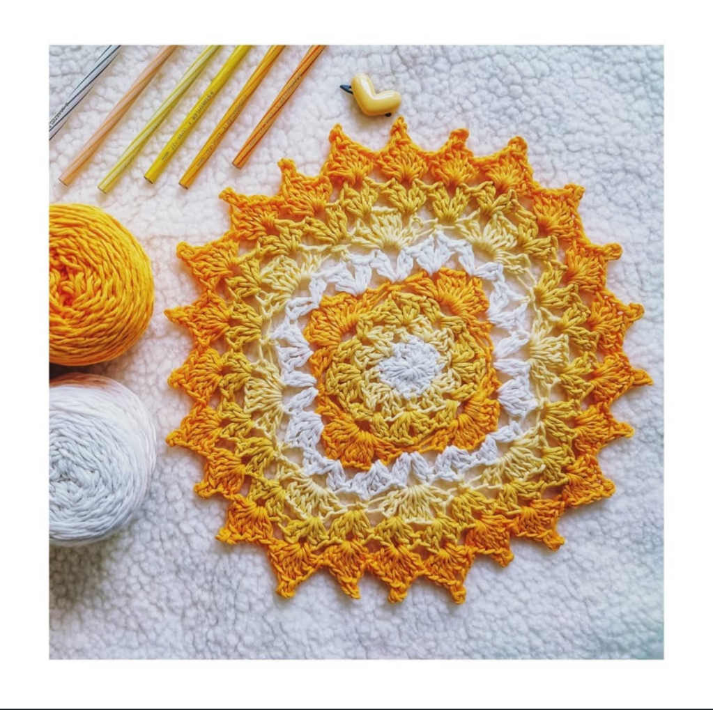 This time I have chosen a Mandala pattern as my gift to you all! This mandala was designed by my daughter for the Digital Magazine – Pattern Pack Pro previously run by Happily Hooked magazine! A simple yet strikinig pattern , we had selected this pattern as a crochet along for one of our Live Sessions on Instagram hosted from our account ViVaCr0chet. It was a super hit , needless to say but some of our friends couldn’t complete this due to various reasons.