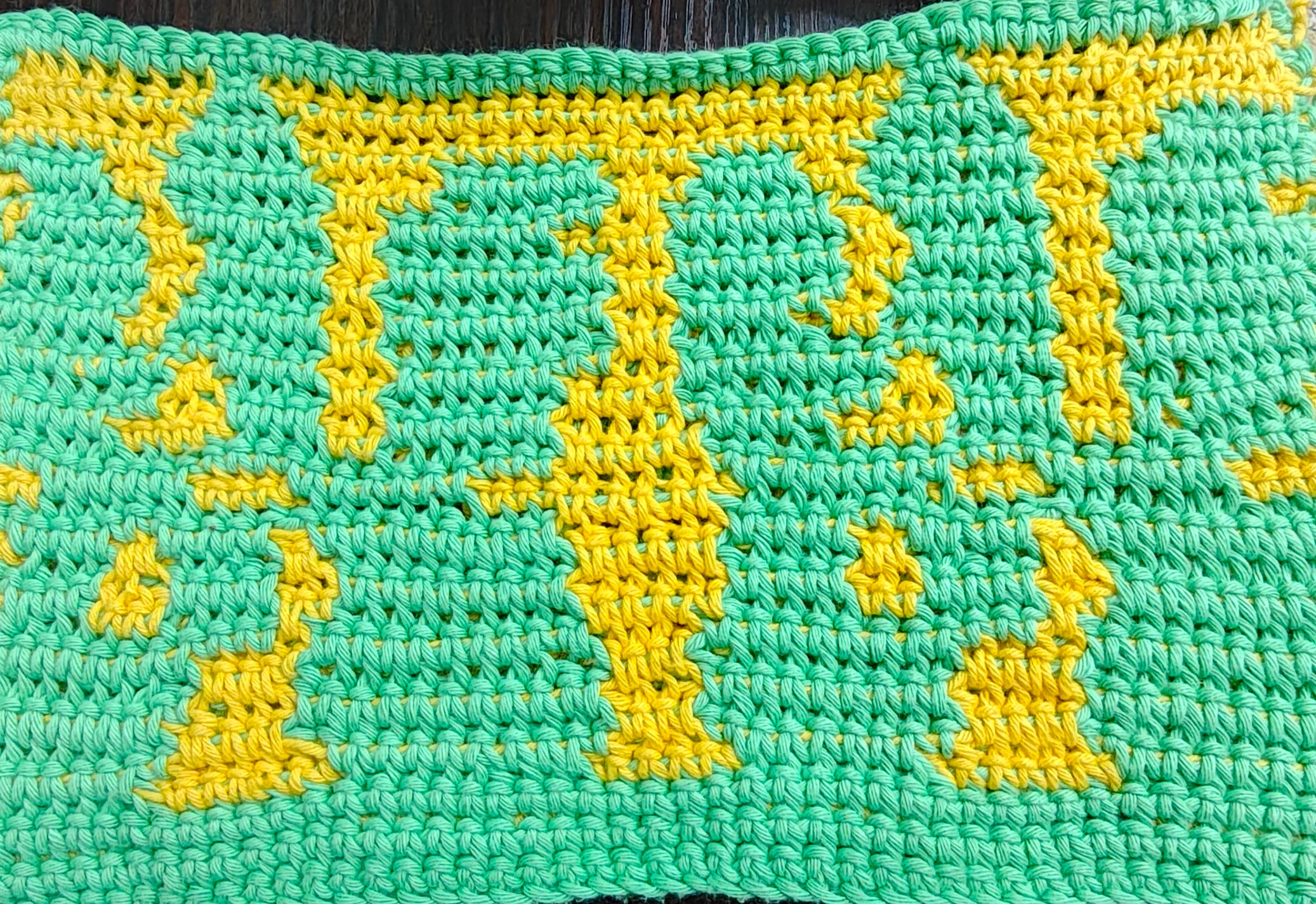For making this sample strip with two motifs I had used Cotton yarn that is locally available in India. I used approximately 80 yds of green and 80 yds of yellow for the 2 motif wide repeat. For the yarn requirements for the blanket please refer to the host post .